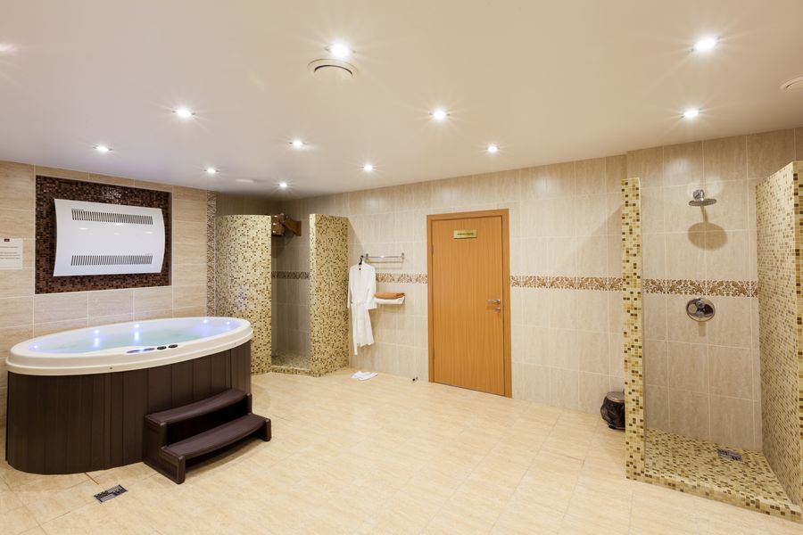 - Аквазона с душевыми кабинами, ушаты с прохладной водой.