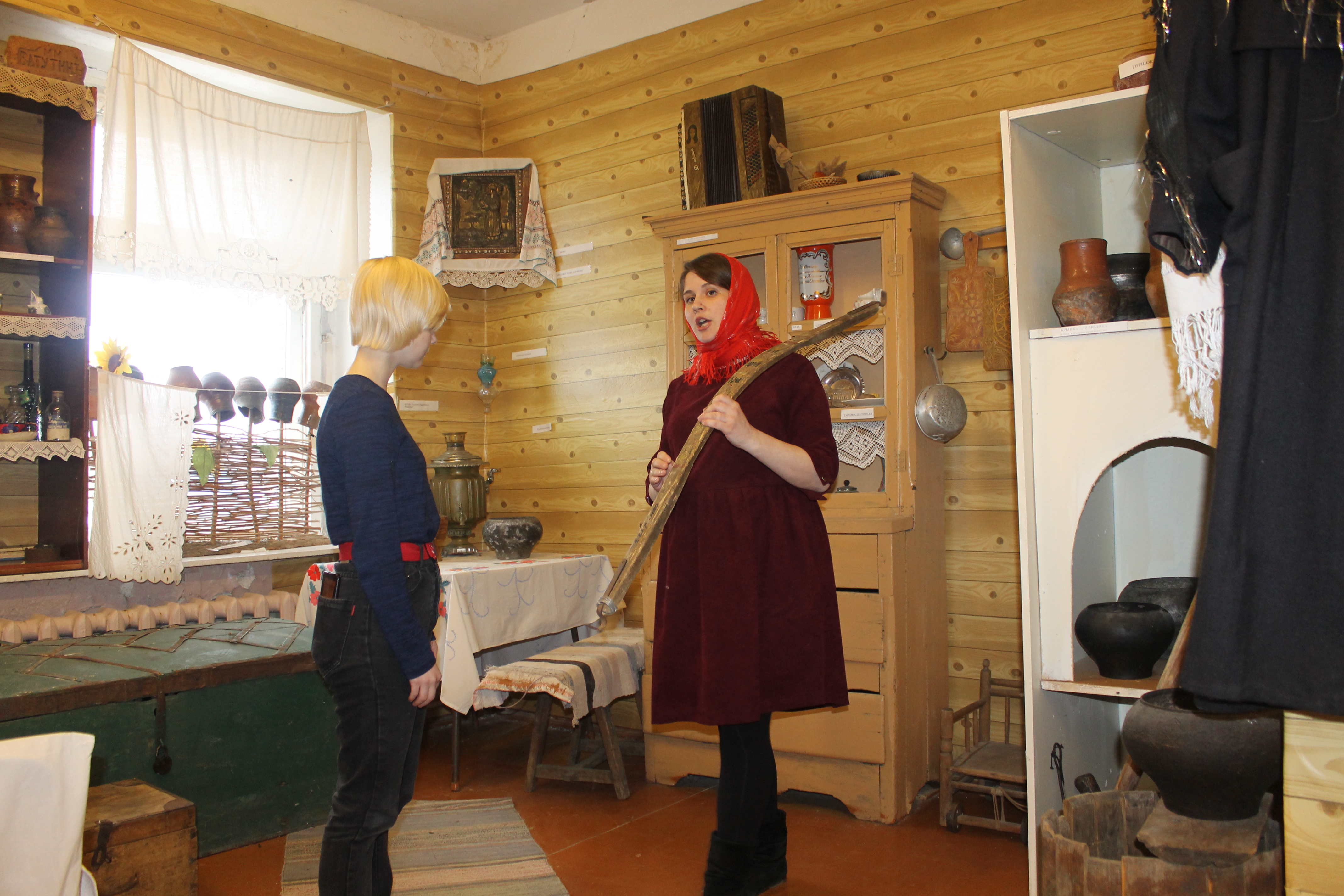 Первый школьный конкурсант, музей МОУ Октябрьская СОШ, представил интерактивную экскурсию "Путешествие в мир русского быта" и мастер-класс по изготовлению куклы "Обережки".