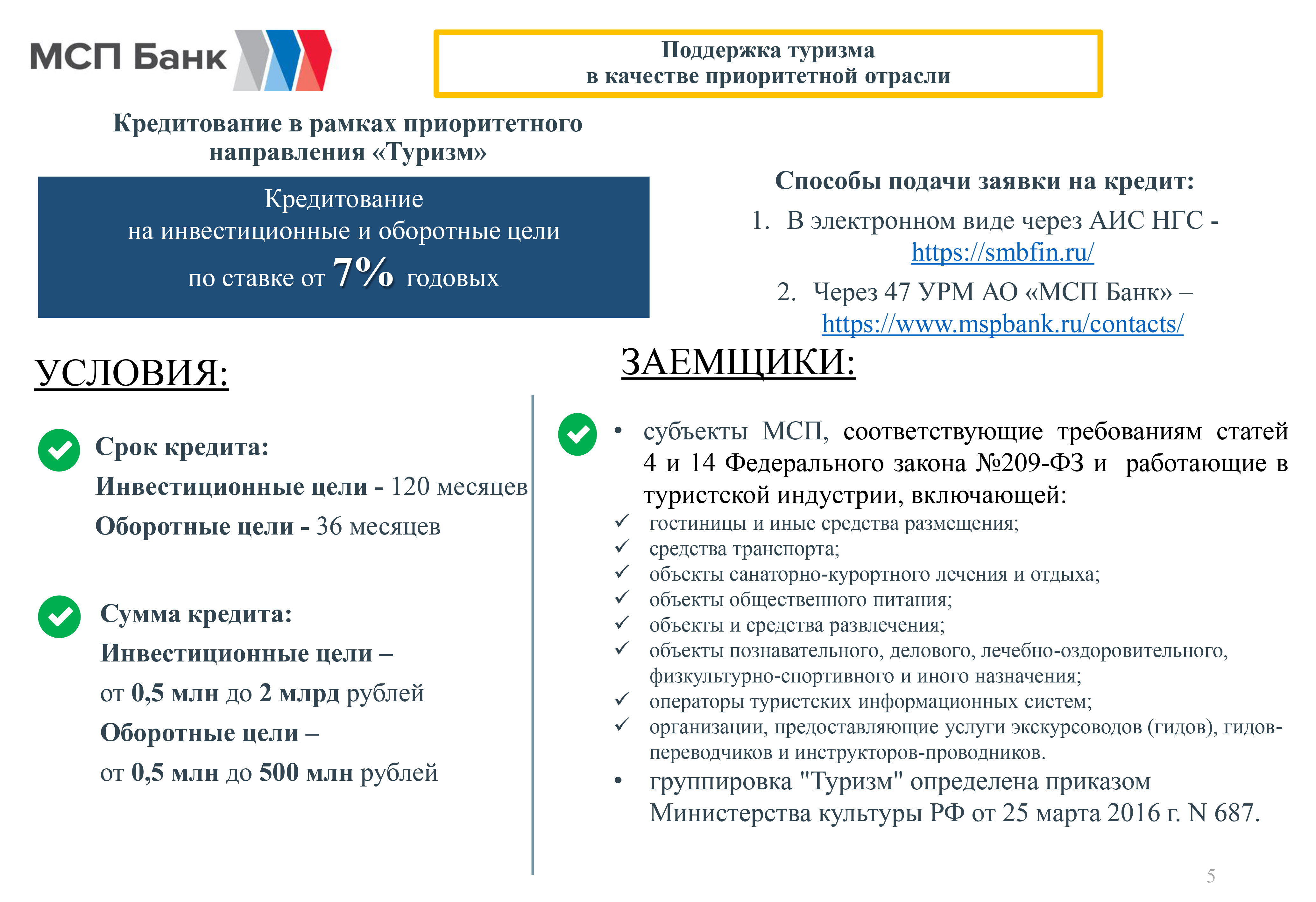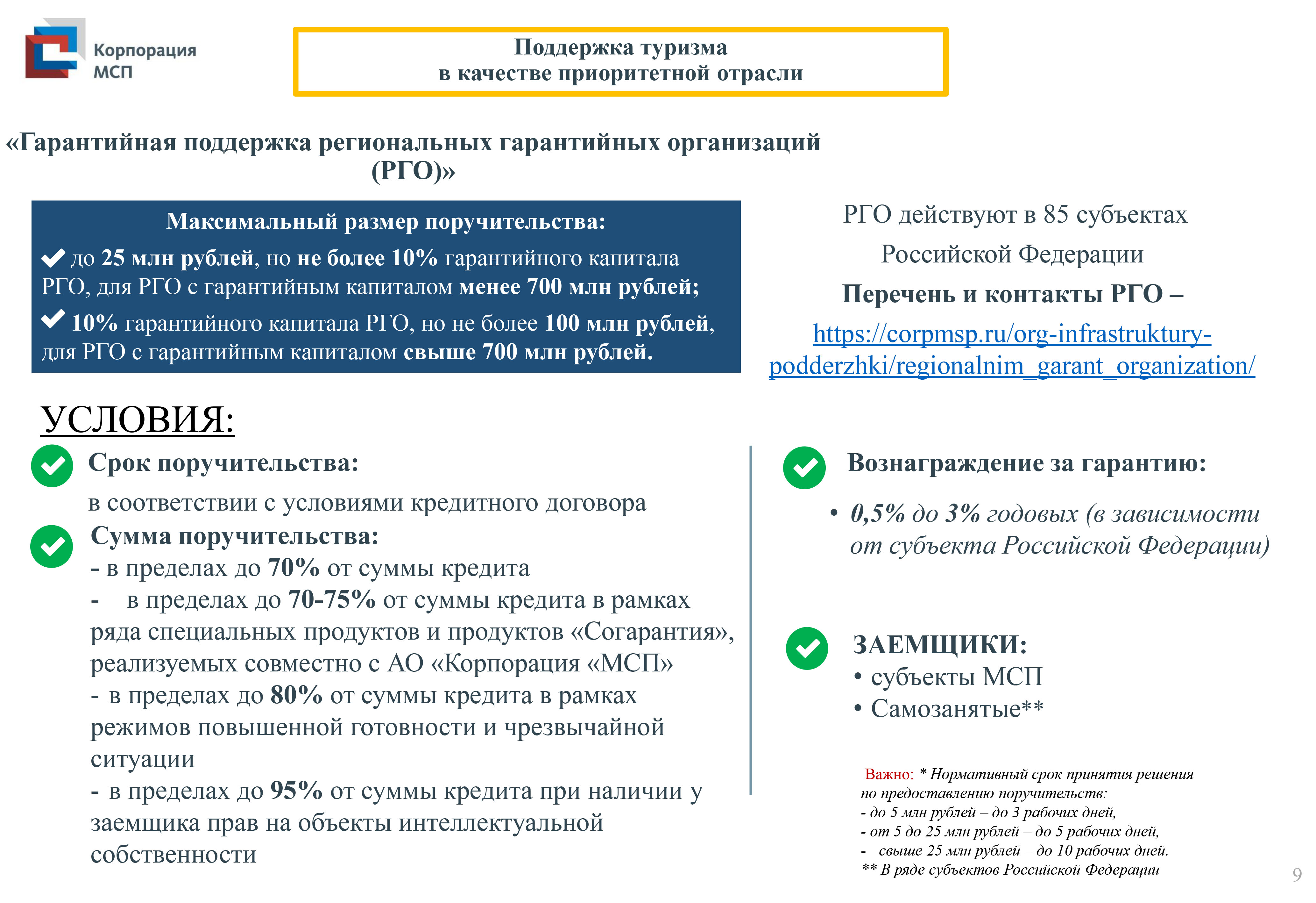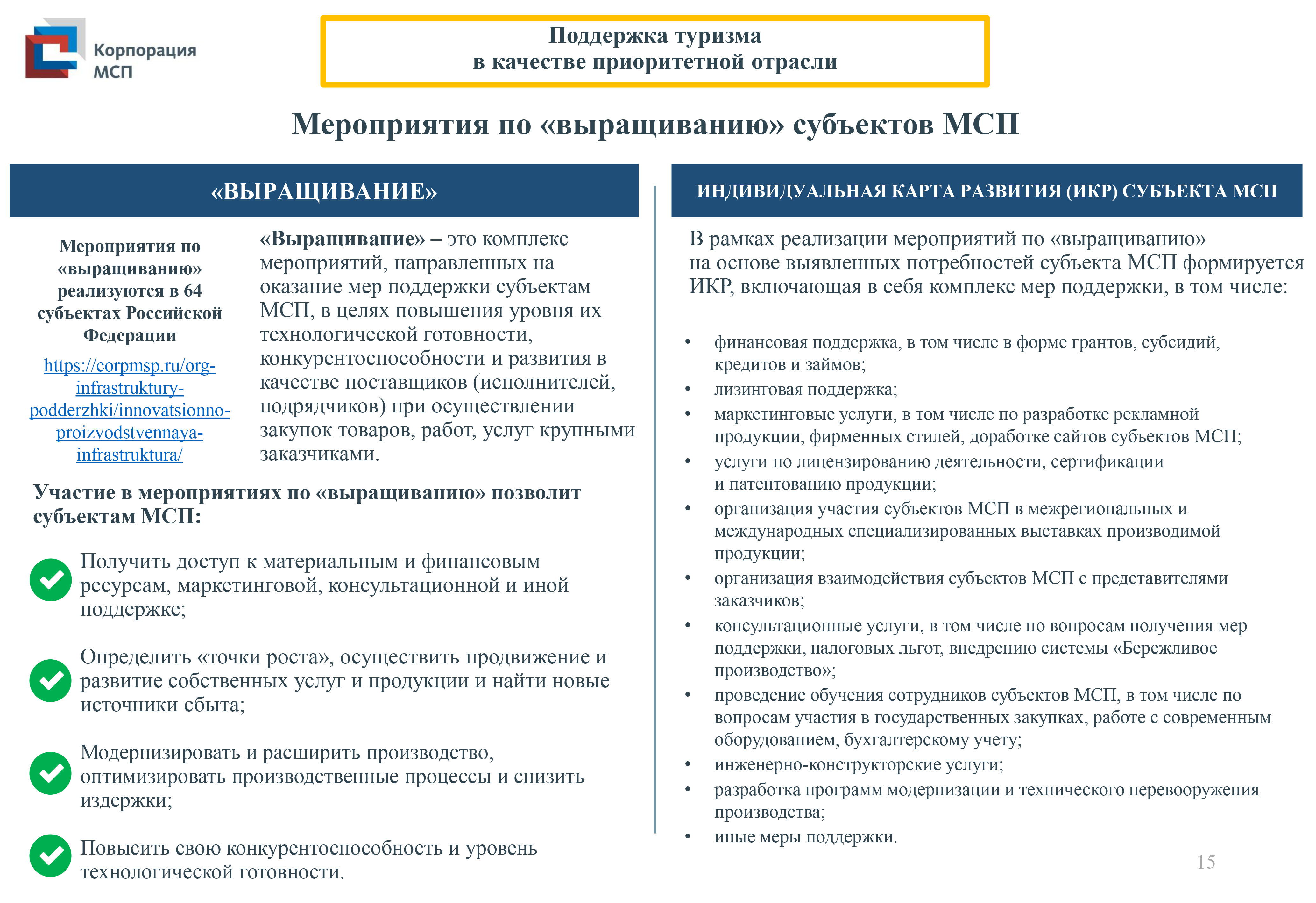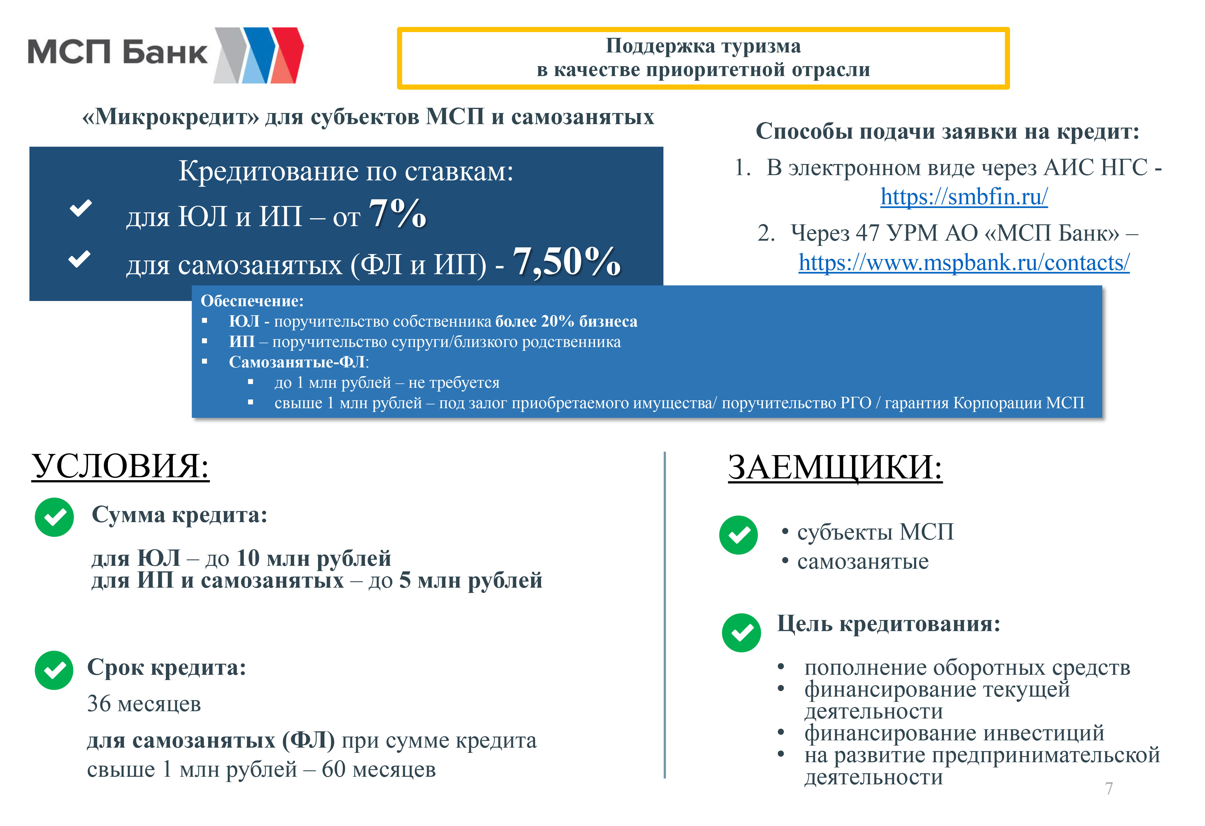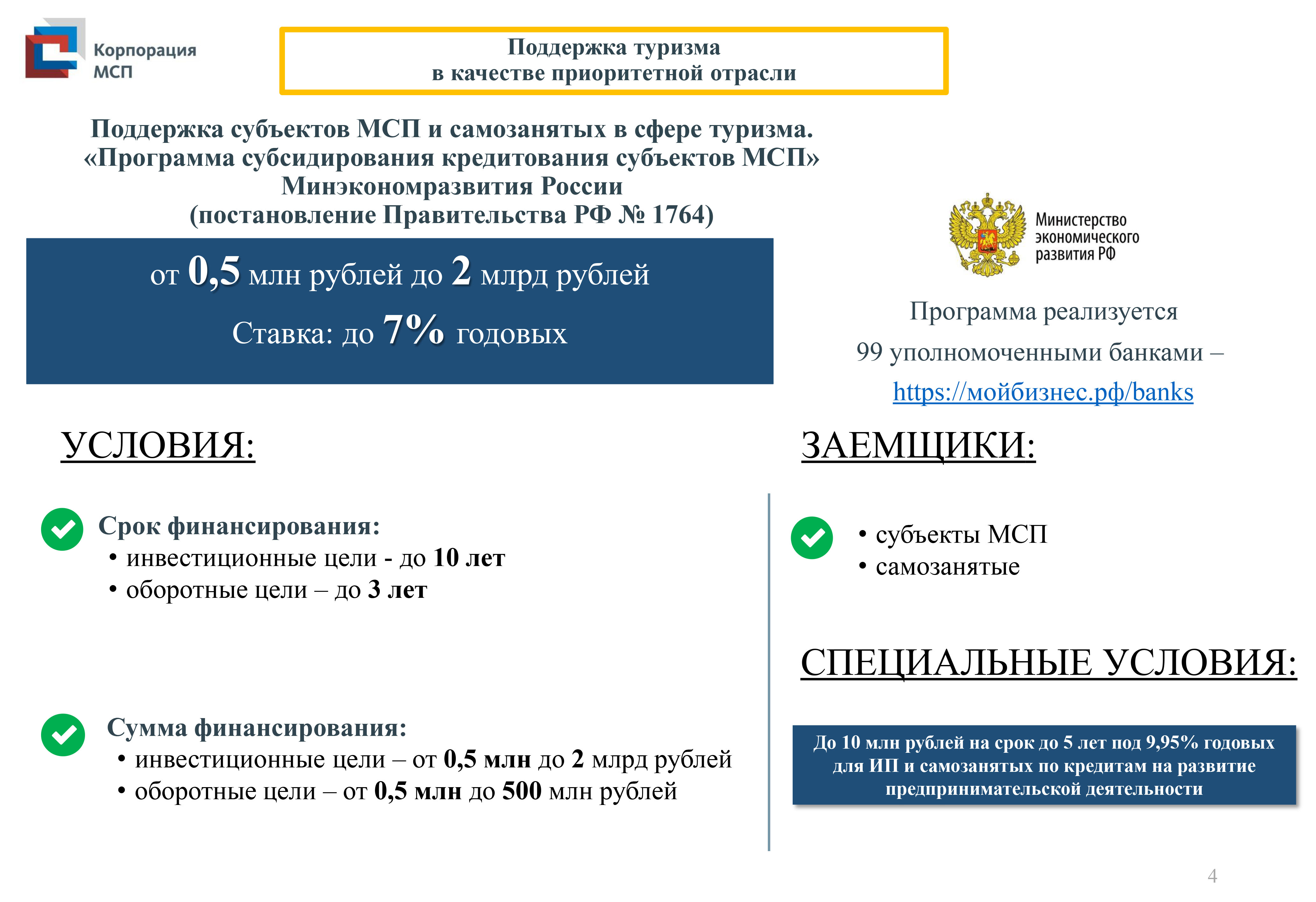 Меры поддержки субъектов МСП и самозанятых в сфере туризма